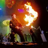 Paul, Till ja Richard ampuvat liekkejä yleisön ylle liekinheitinnaamareillaan. Joissakin konserteissa Flake käytti samantapaista vettä ampuvaa naamaria.